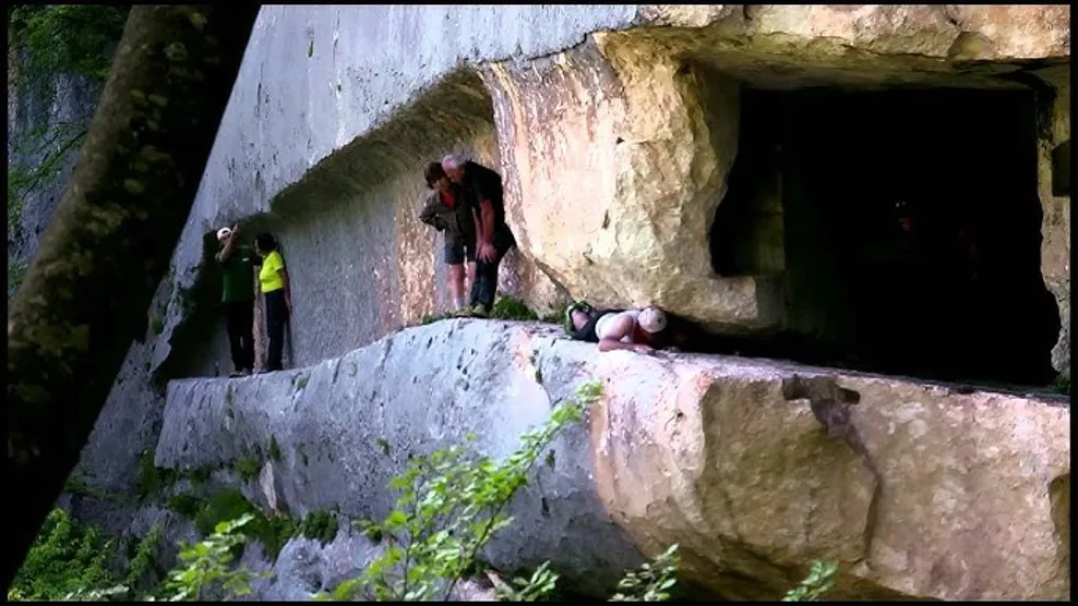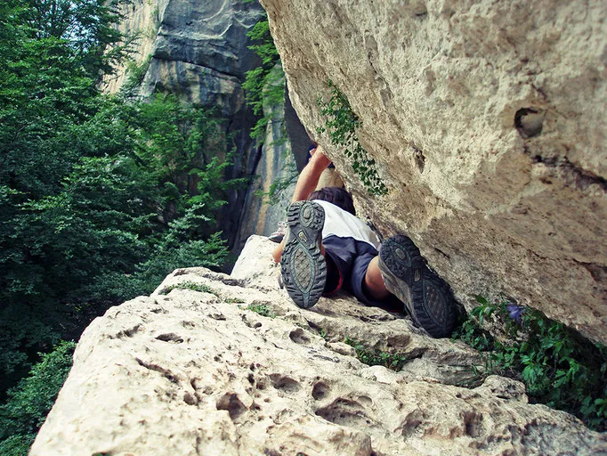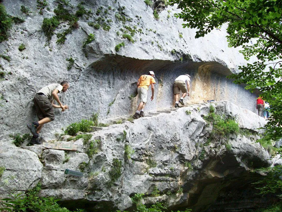 Si passa per la Grotta di San Nicola, dove sarà necessario aiutarsi con un cavo d’acciaio (passaggio semplice, ma che potrebbe creare qualche problema a chi soffre di vertigini) e si continua a salire nel bosco su terreno talvolta accidentato ma sempre piuttosto agevole, fino al Ponte delle Pietre.