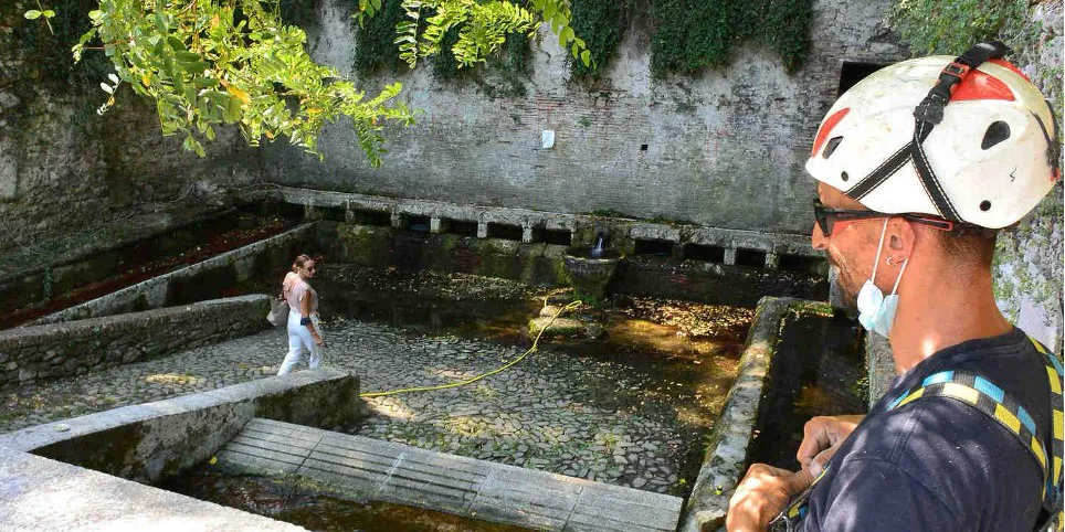 Giunti in piazza Orsini vedrete la fontana dei due leoni. Addossata al porticato del municipio e protetta da una ringhiera in metallo, risale agli anni tra la fine dell’ottocento e gli inizi del novecento.