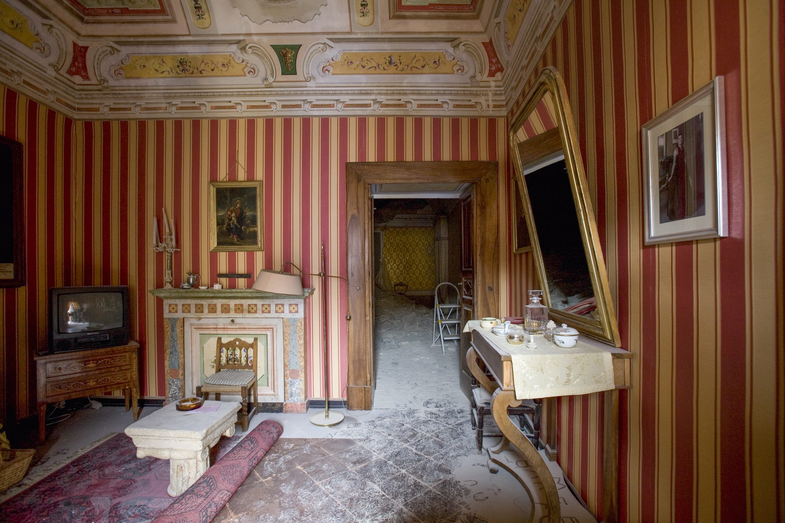 Il terremoto del 2009 danneggia gravemente un edificio su cui la famiglia aveva già investito fortemente. La ricostruzione e consolidamento post sisma inizia nel 2018 e, dopo molte vicissitudini, verrà sostanzialmente terminata solo a fine 2024.